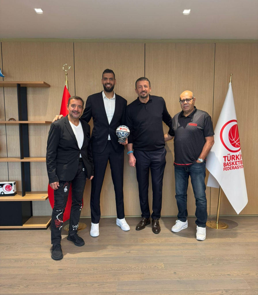 Le président de la Fédération turque de basketball et ancien joueur NBA, Hedo Türkoğlu, a reçu au siège de la fédération M. Salah Mejri, vice-président de la Fédération tunisienne de basketball chargé des relations extérieures et chef de la délégation nationale actuellement en stage en Turquie, ainsi que M. Adel Tlatli, entraîneur de la sélection tunisienne.