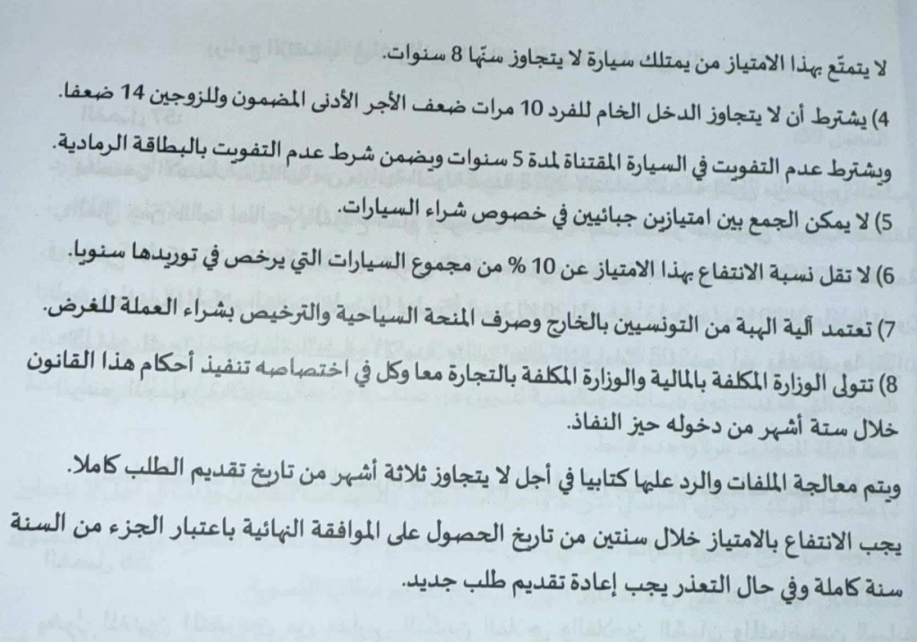 بعد إسقاط المقترح الأوّل المتعلّق بتوريد سيارة لكلّ مواطن مرة في العمر مُعفاة ديوانيا، قام النواب أصحاب المقترح الثاني بسحبه لفائدة الفصل المُتوافق عليه والذي حضي بموافقة 131 نائبا.